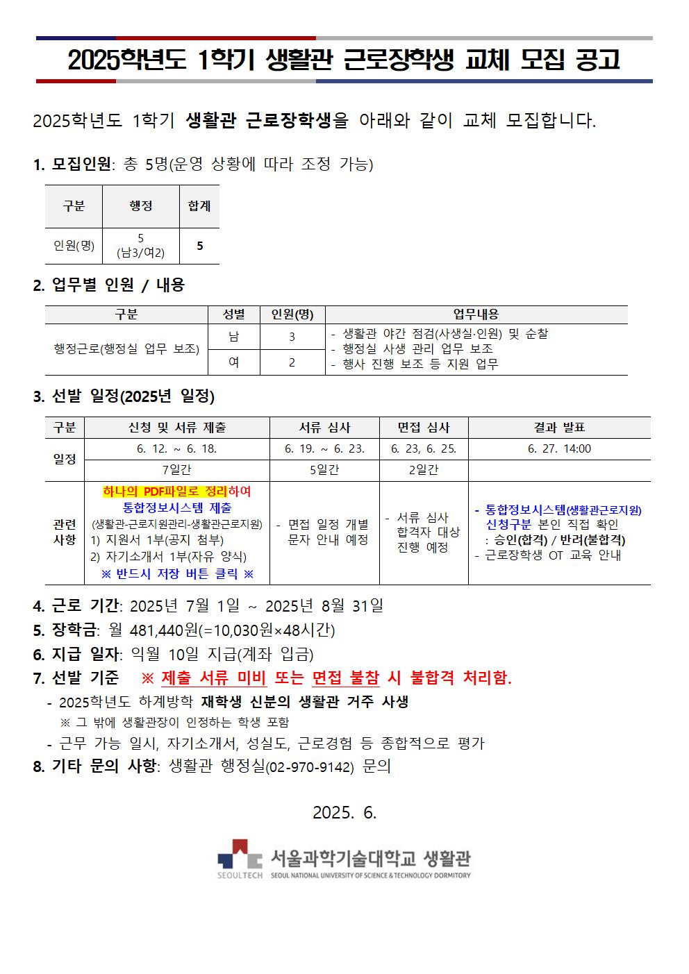 2025학년도 하계방학 식당운영 및 지문등록 안내(끼니변경신청 포함)