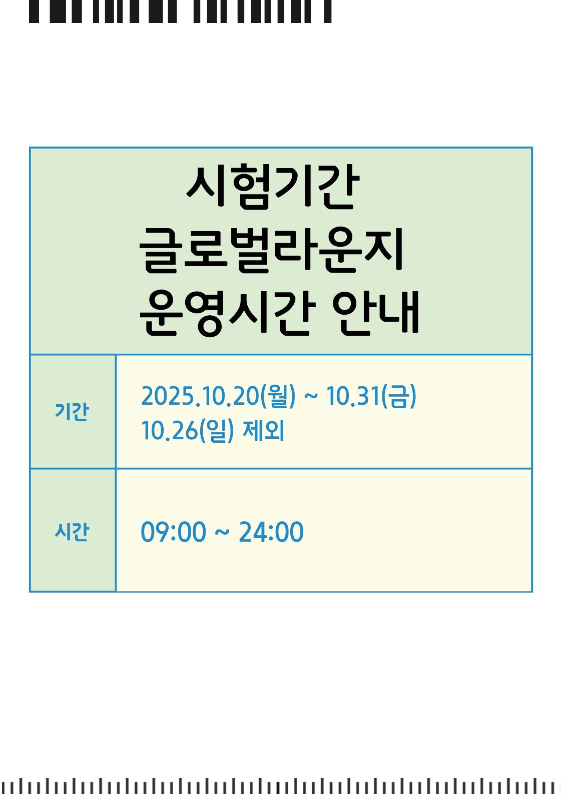 Global Lounge 시험기간 운영시간 안내