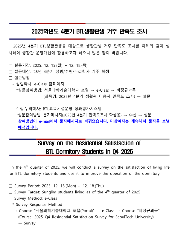 2025학년도 4분기 BTL생활관생 거주 만족도 조사