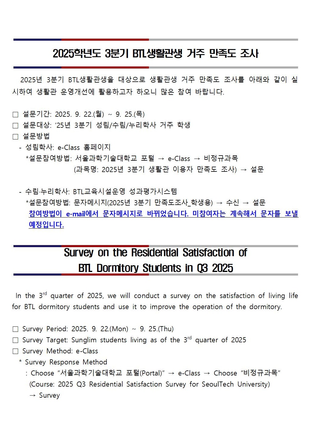 가을학기 호실 점검 Fall Semester Dormitory Inspection