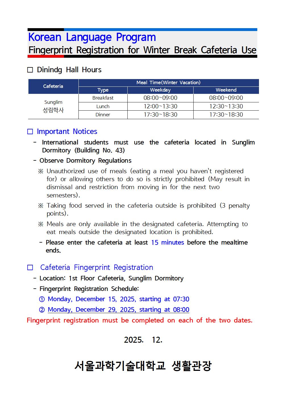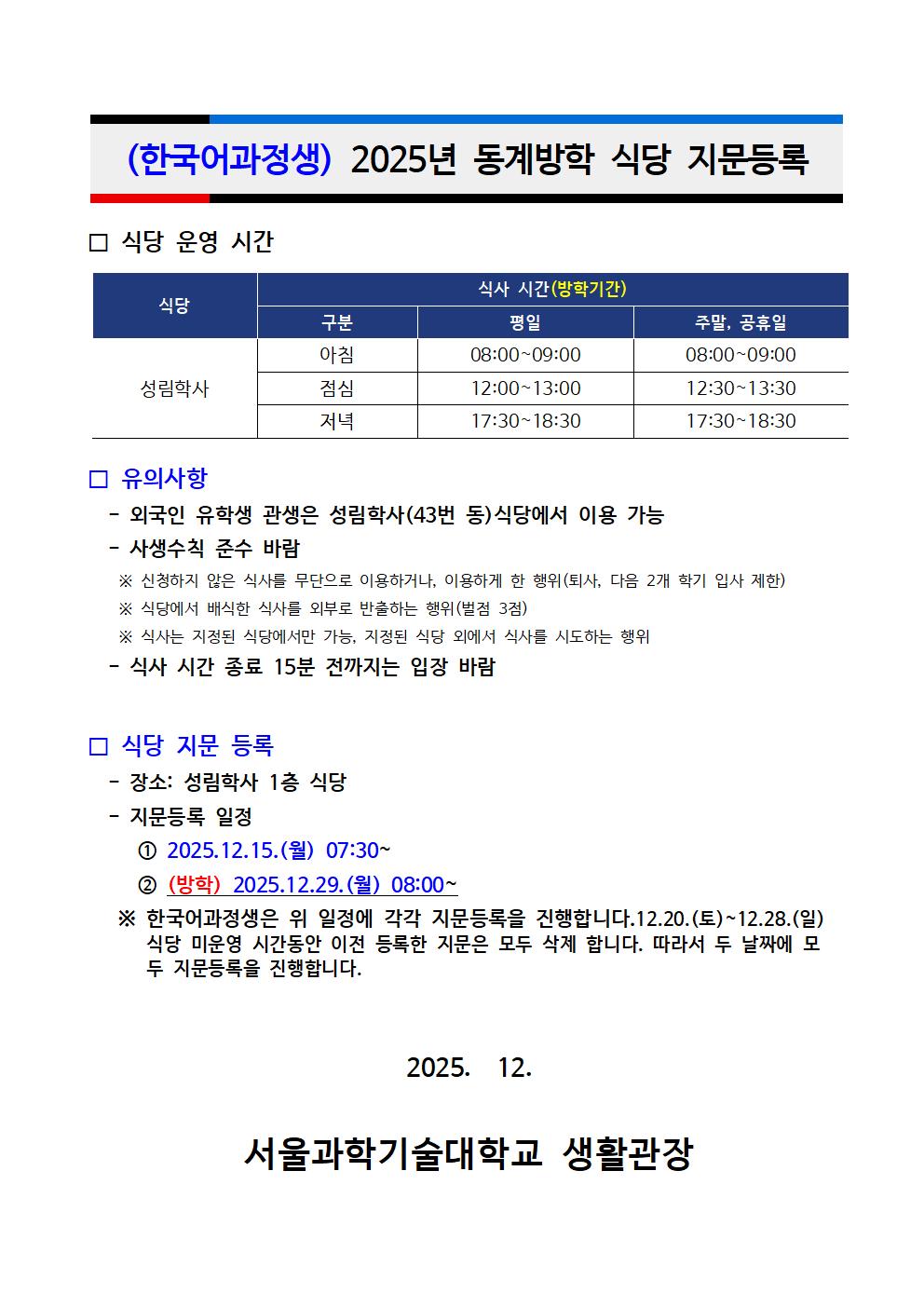25학년도 2학기 생활관 이용자 만족도 조사 Autumn 2025 Student Housing Satisfaction Survey(~12.15.월요일까지)