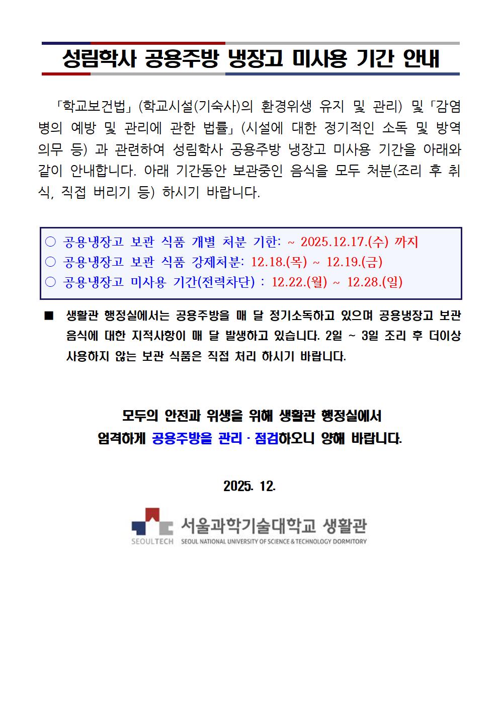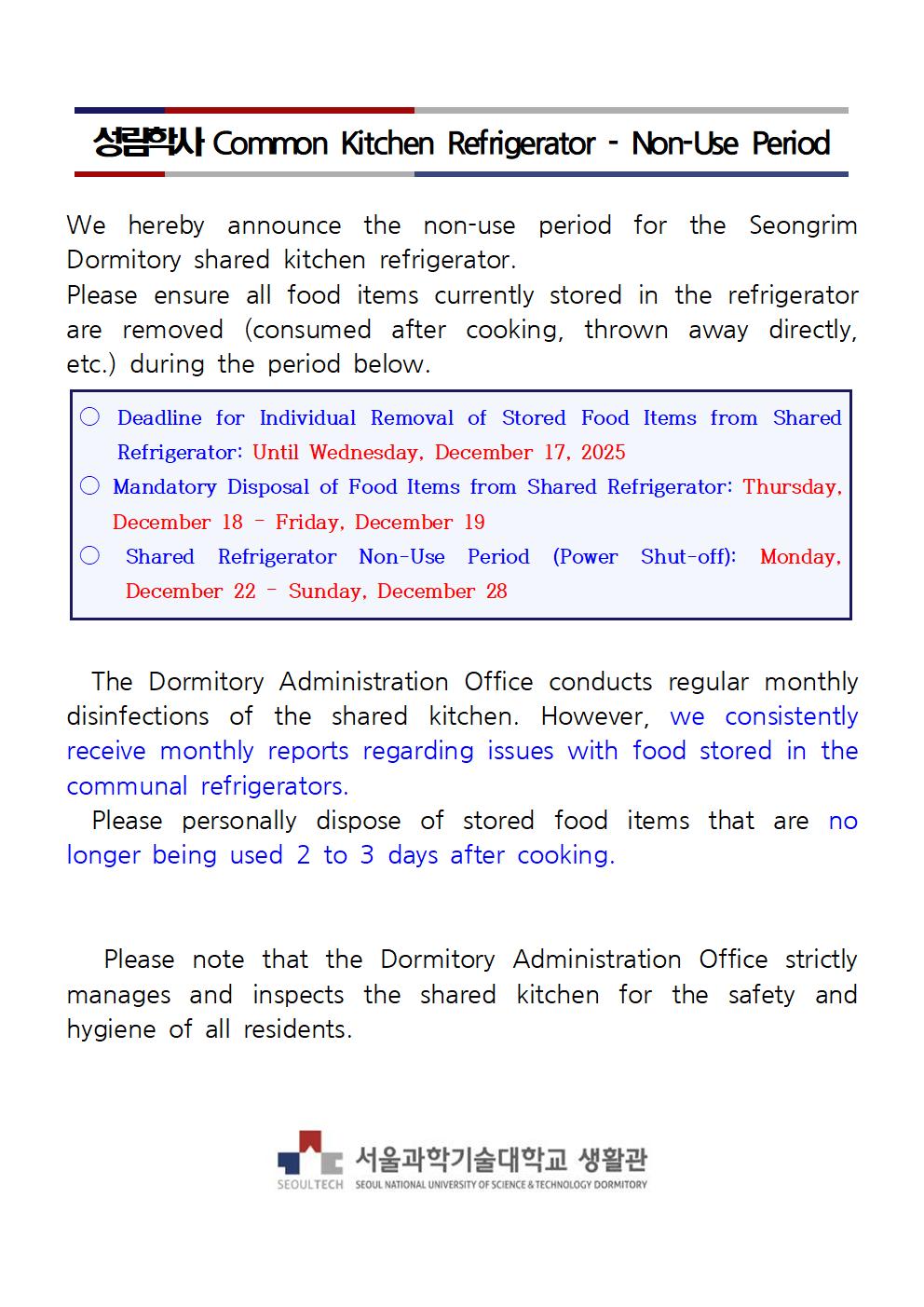성림학사 Int'l Student Dormitory Checkout & Room Transfer Preparation Guide